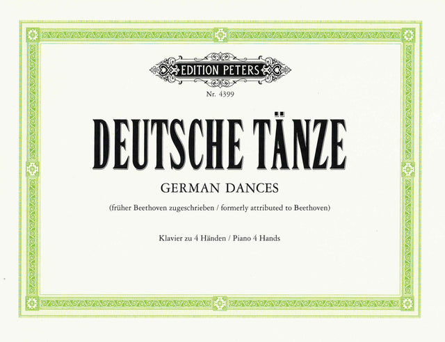 German Dances, formerly attributed to Beethoven, for piano duet (4 hands), edited by Carl Bittner. These German Dances are preserved anonymously in a notebook dating roughly from 1815. Despite the long-term debate of the authorship of this work, the German Dances, thanks to their easy execution, continue to be favorite items in early piano lessons, especially in group instruction.