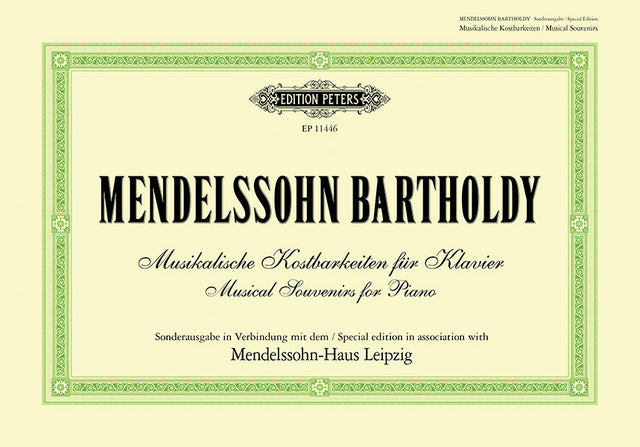 In association with the Mendelssohn House, Leipzig, Edition Peters proudly presents the Mendelssohn 'Souvenir' edition, containing a selection of piano works intended by Mendelssohn to be played in the home, as generations of amateur musicians since the 19th century have done — learning to appreciate and love this wonderful music.