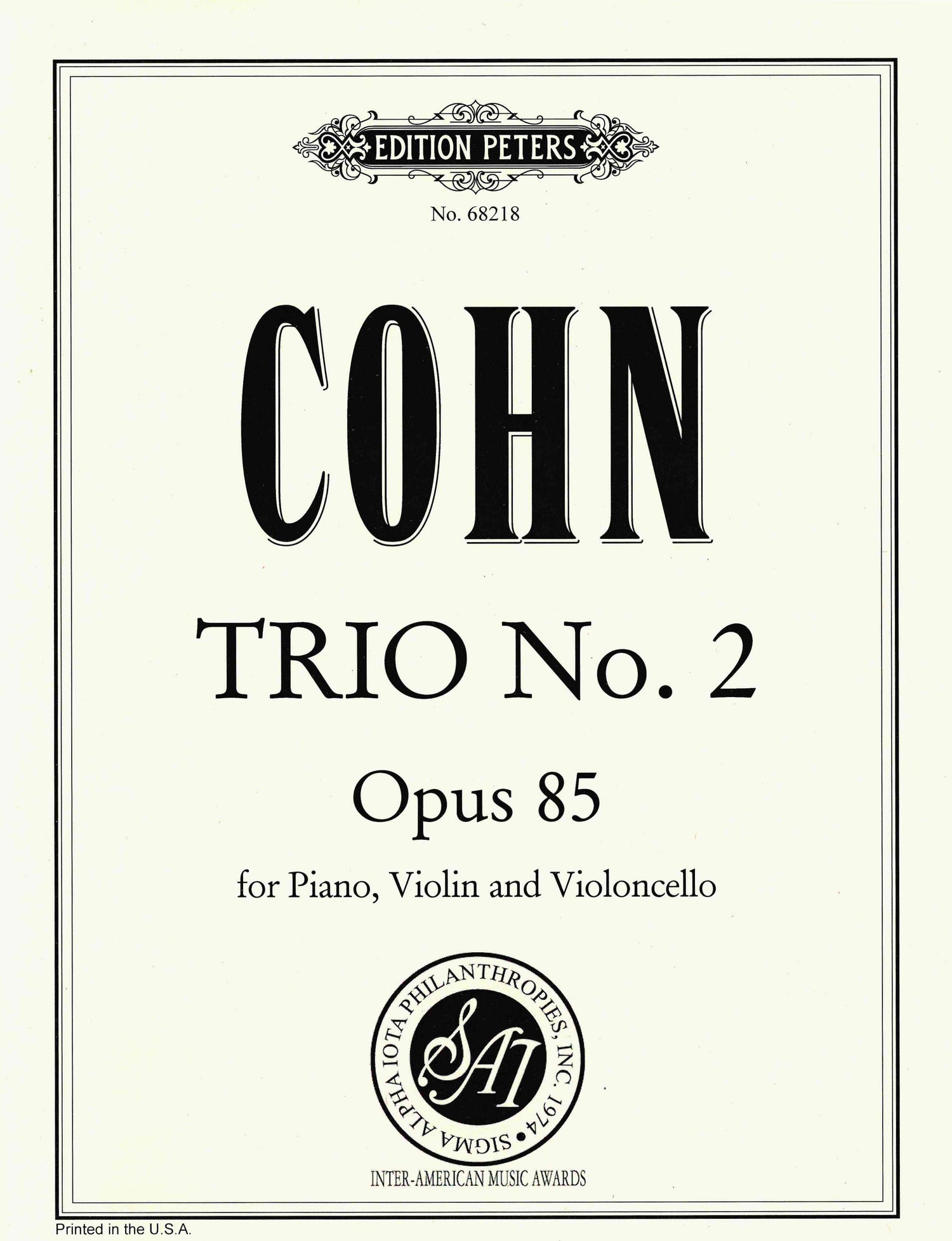 Cohn: Piano Trio No. 2, Op. 85
