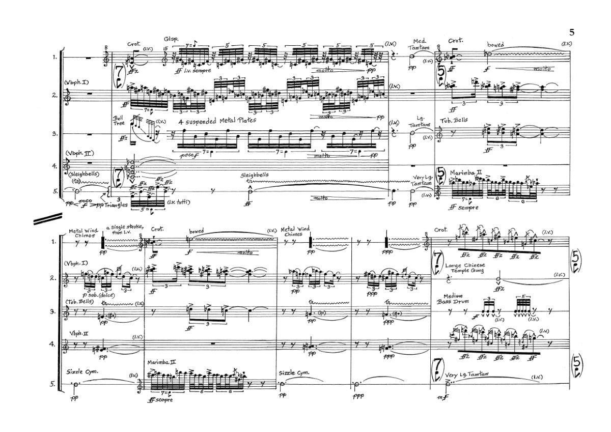 - Requires five percussionists, large battery of instruments