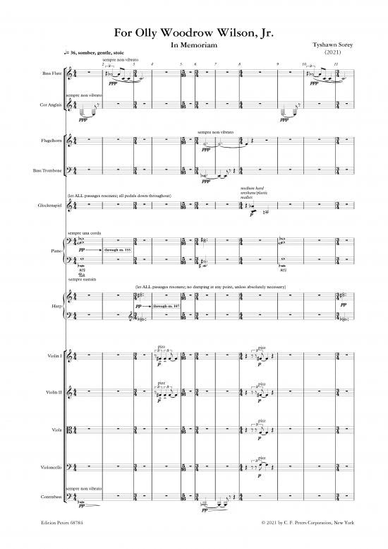 For Olly Woodrow Wilson, Jr. in memoriam for large mixed ensemble was composed by Tyshawn Sorey on a co-commission from the San Francisco Contemporary Music Players and from Radio France and Ensemble Intercontemporain. Ensemble Intercontemporain recorded the world premiere performance, conducted by Elena Schwarz at the Maison de la Radio et de la Musique, Paris, on February 7, 2021 for a broadcast that March.